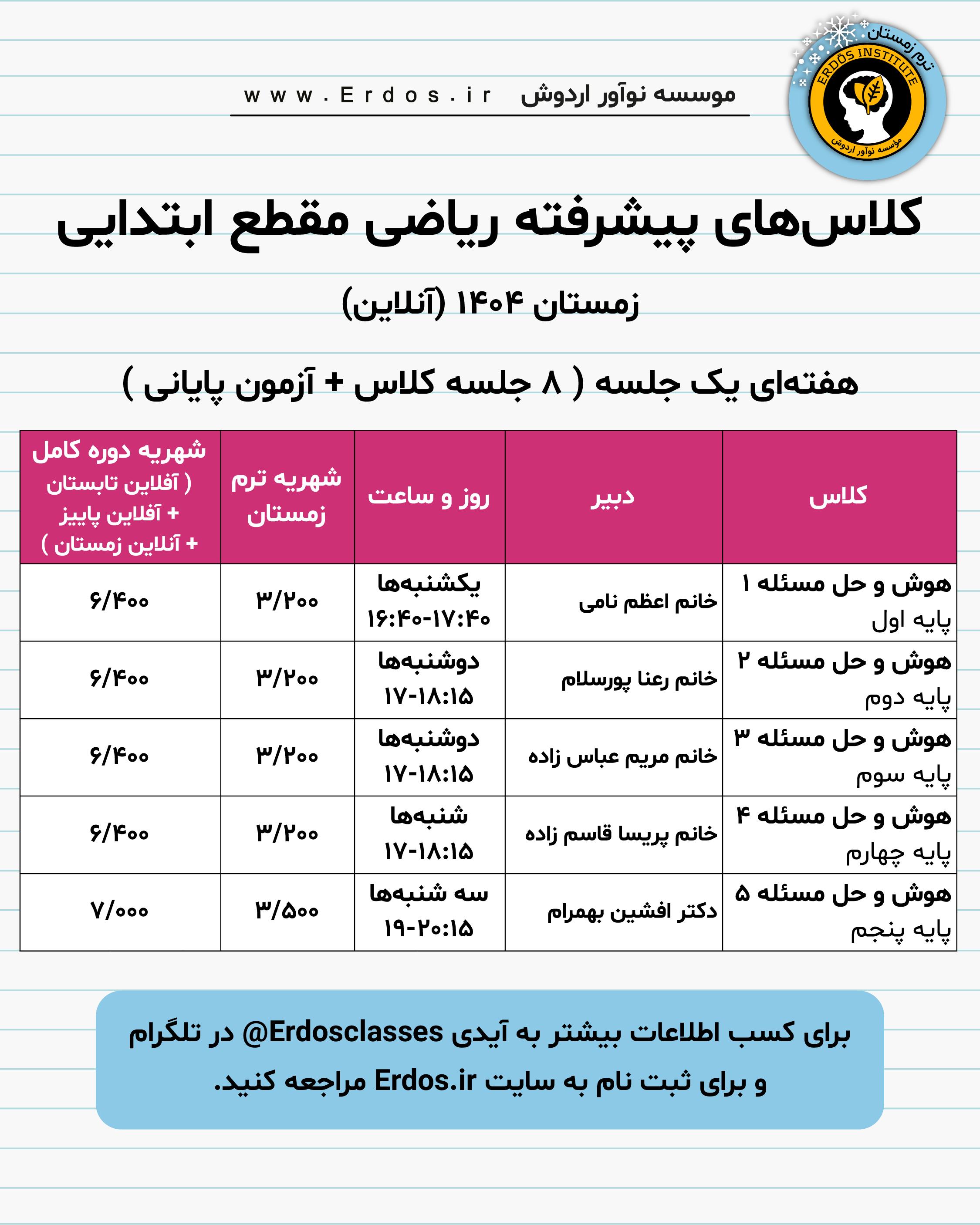 المپیاد ریاضی دوره ابتدایی (زمستان1404)