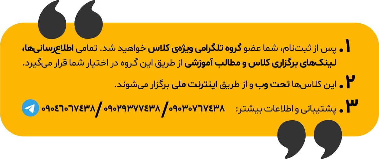 ✅شما می توانید کلاس های ترم تابستان و ترم پاییز را بصورت آفلاین و کلاس های ترم زمستان را بصورت آنلاین تهیه کنید.