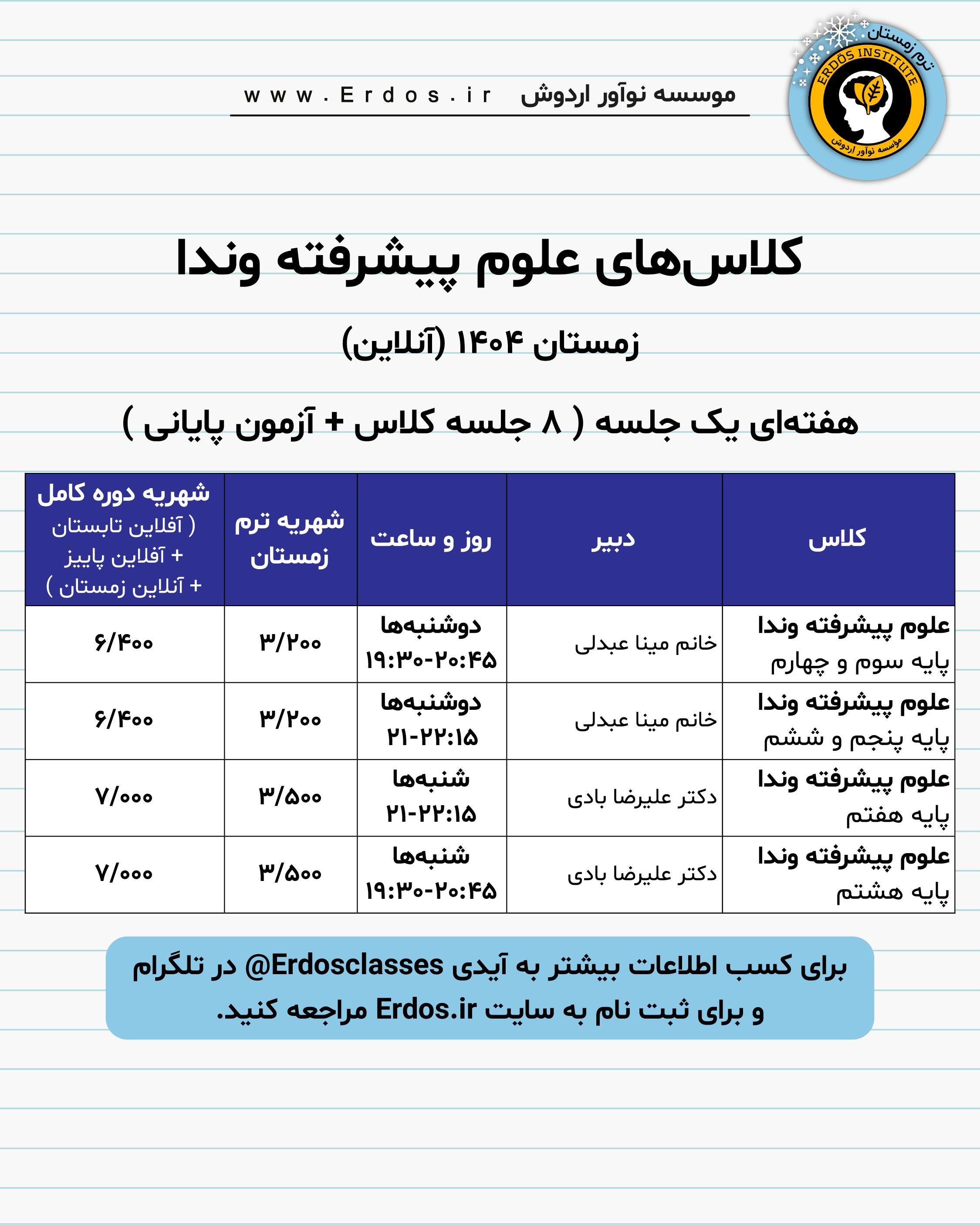 شروع کلاسها : از اواخر دی ماه 1404