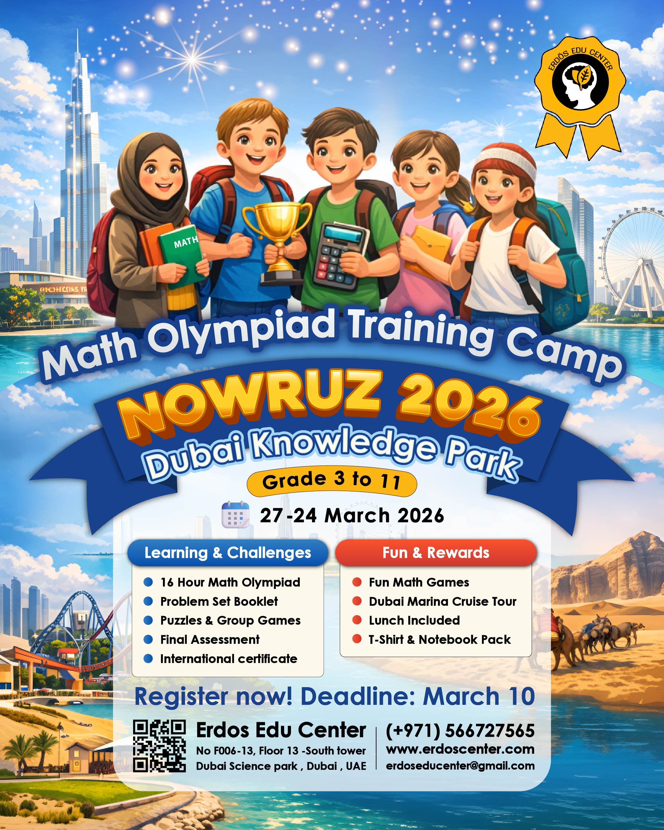 موسسه نوآور اردوش مفتخر است برای برگزاری تور آموزشی در 24 تا 27 فروردین ( March ) 1405 میزبان دانش آموزان و همراهان محترمشان از کشورهای ایران , امارات , ترکیه , آذربایجان و تاجیکستان در کشور امارات باشد . این تور آموزشی به مدت 5 روز در شهر دبی واقع در کشور امارات متحده عربی در Dubai Knowladge park برگزار میگردد.